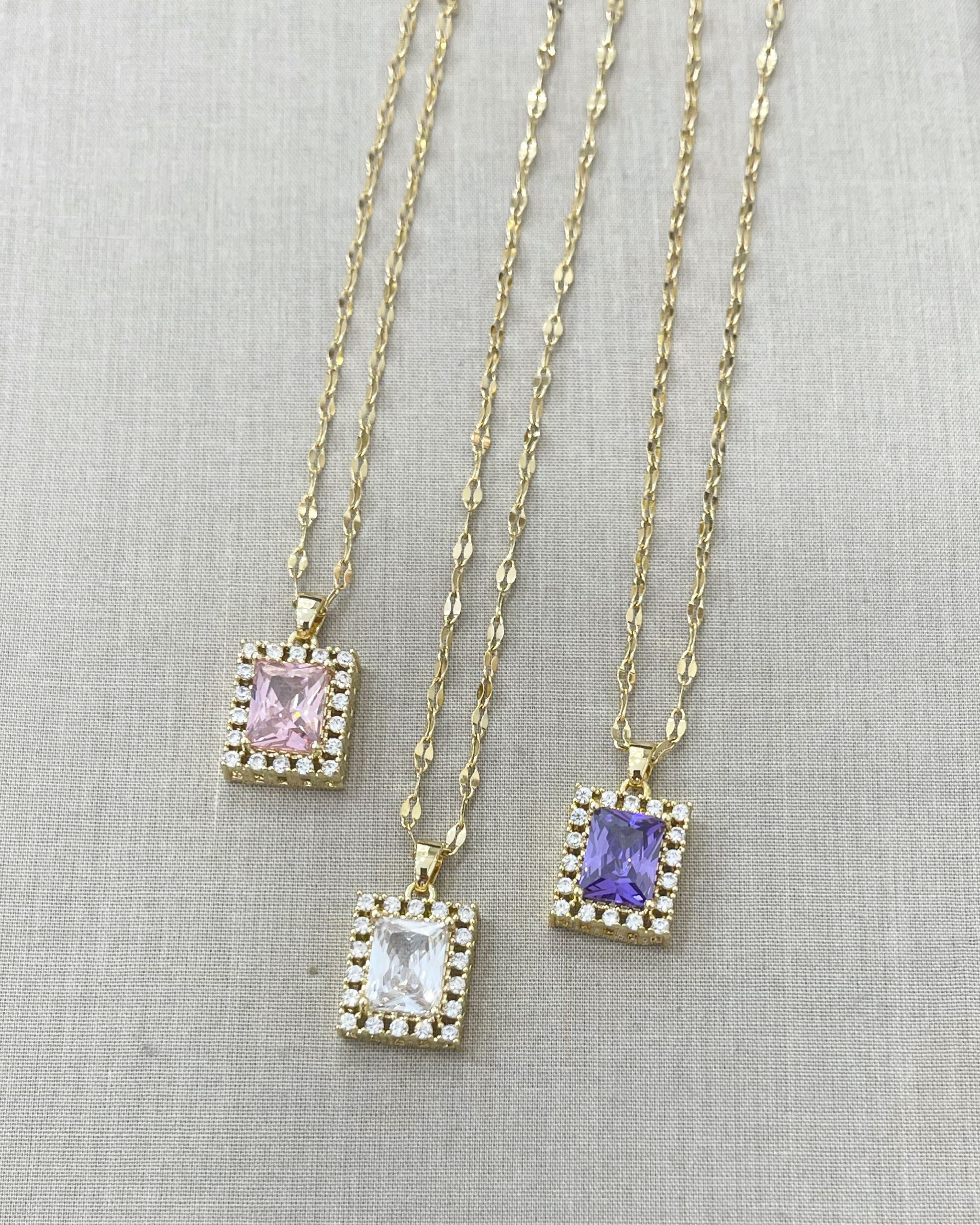 Golden steel necklace with square crystal stone