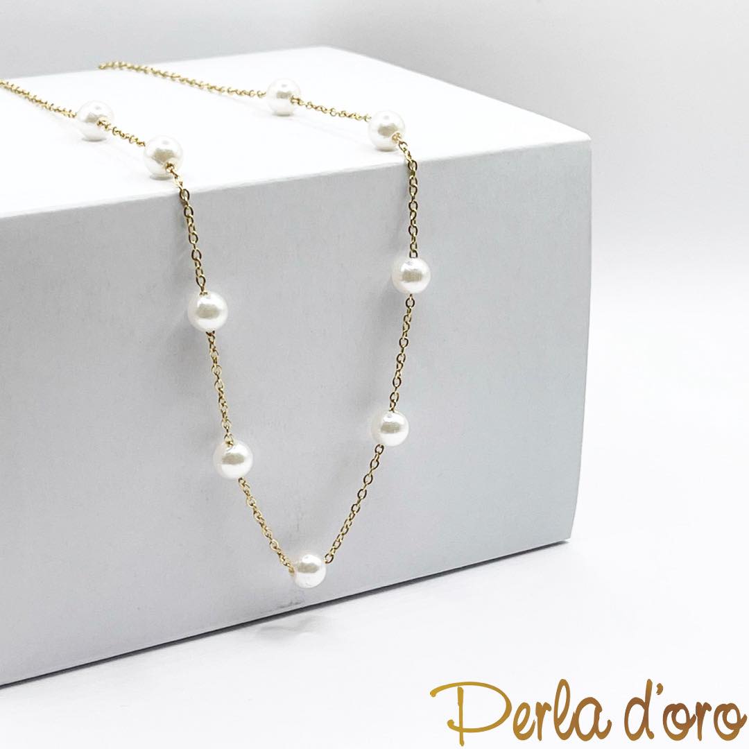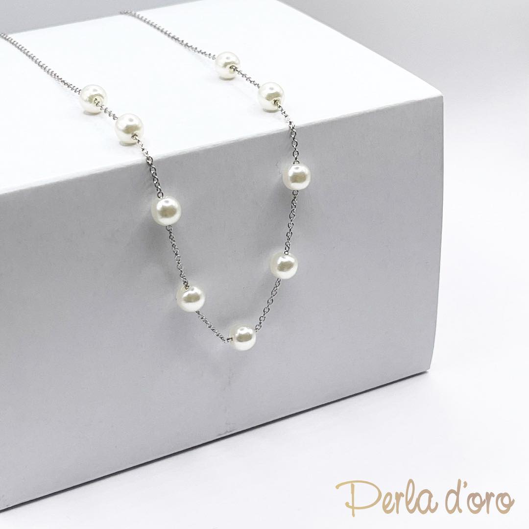 Steel necklace with white pearl