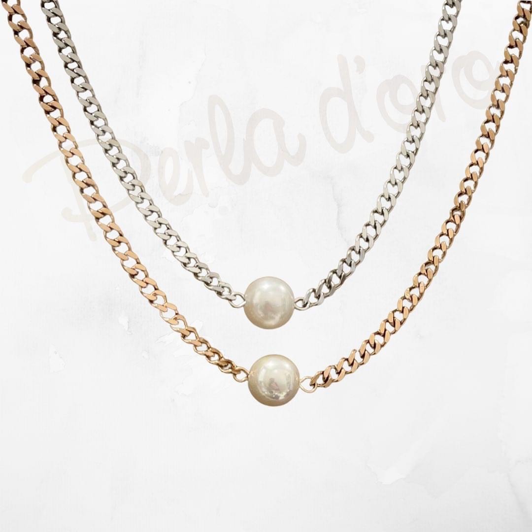 Κολιέ αλυσίδα ατσάλινη με πέρλα