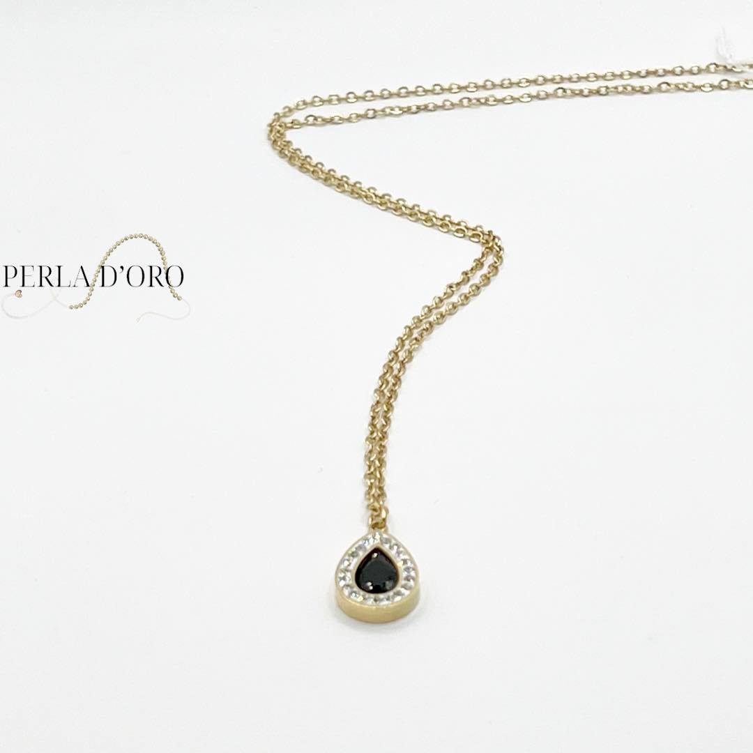 Κολιέ ατσάλινο χρυσό με ζιργκόν