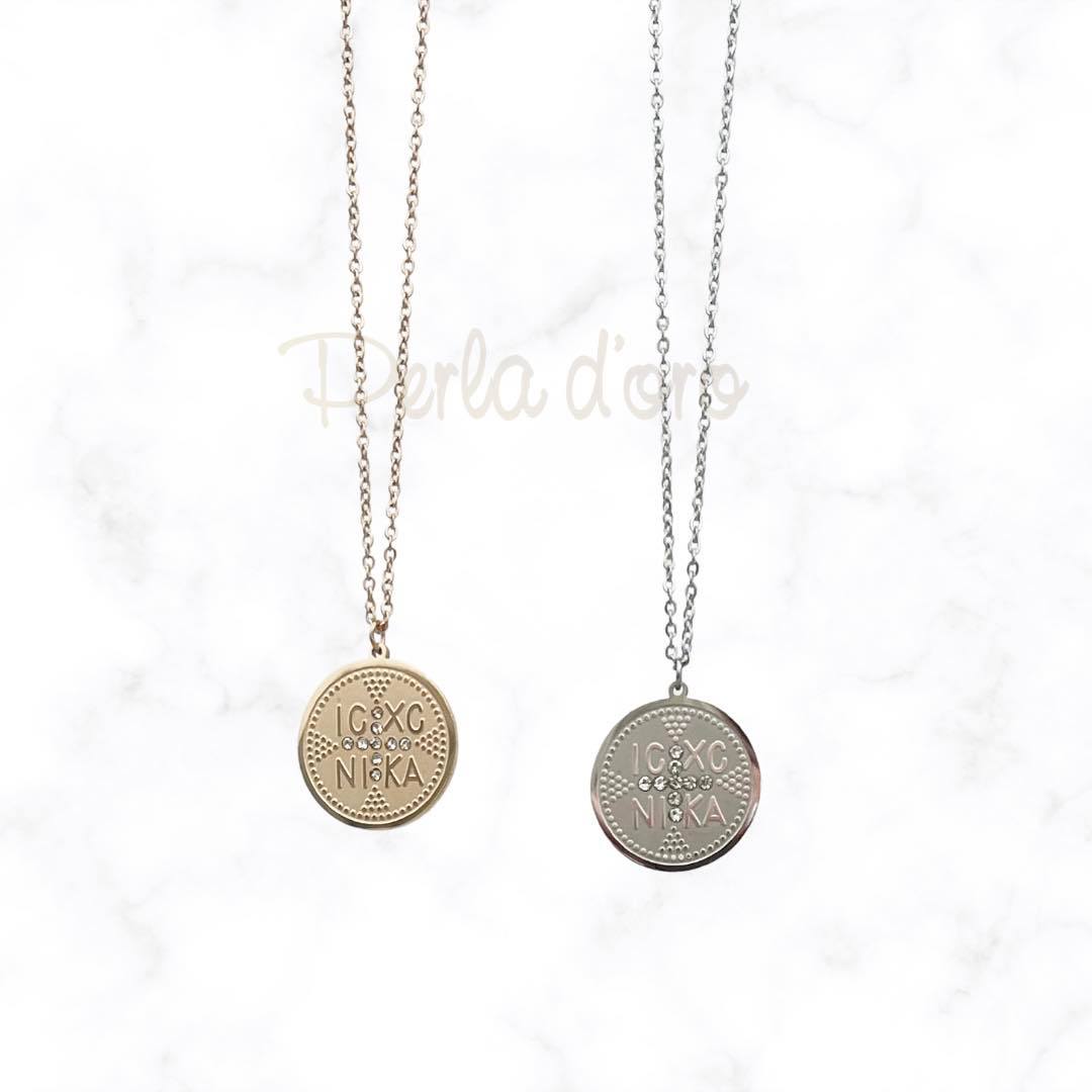 Κολιέ κωνσταντινάτο ατσάλινο με λευκά ζιργκόν