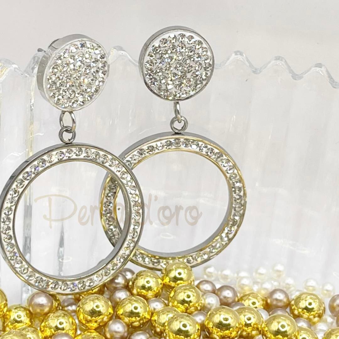 Αρχική σελίδα / Κοσμήματα / Σκουλαρίκια / Σκουλαρίκια ατσάλινα ασημί με λευκά ζιργκόν