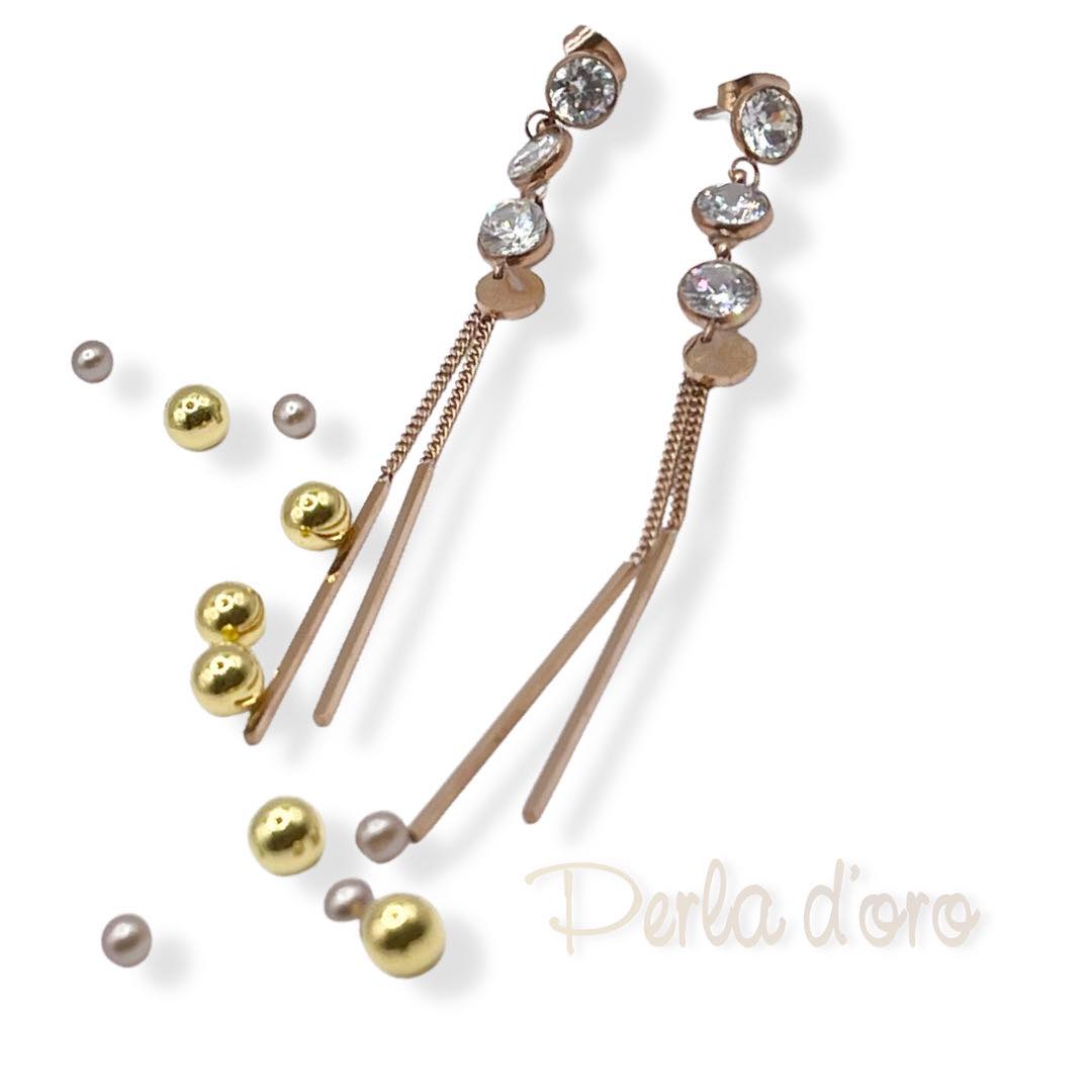Σκουλαρίκια ατσάλινα ροζ χρυσά με λευκές κρυσταλλικές πέτρες